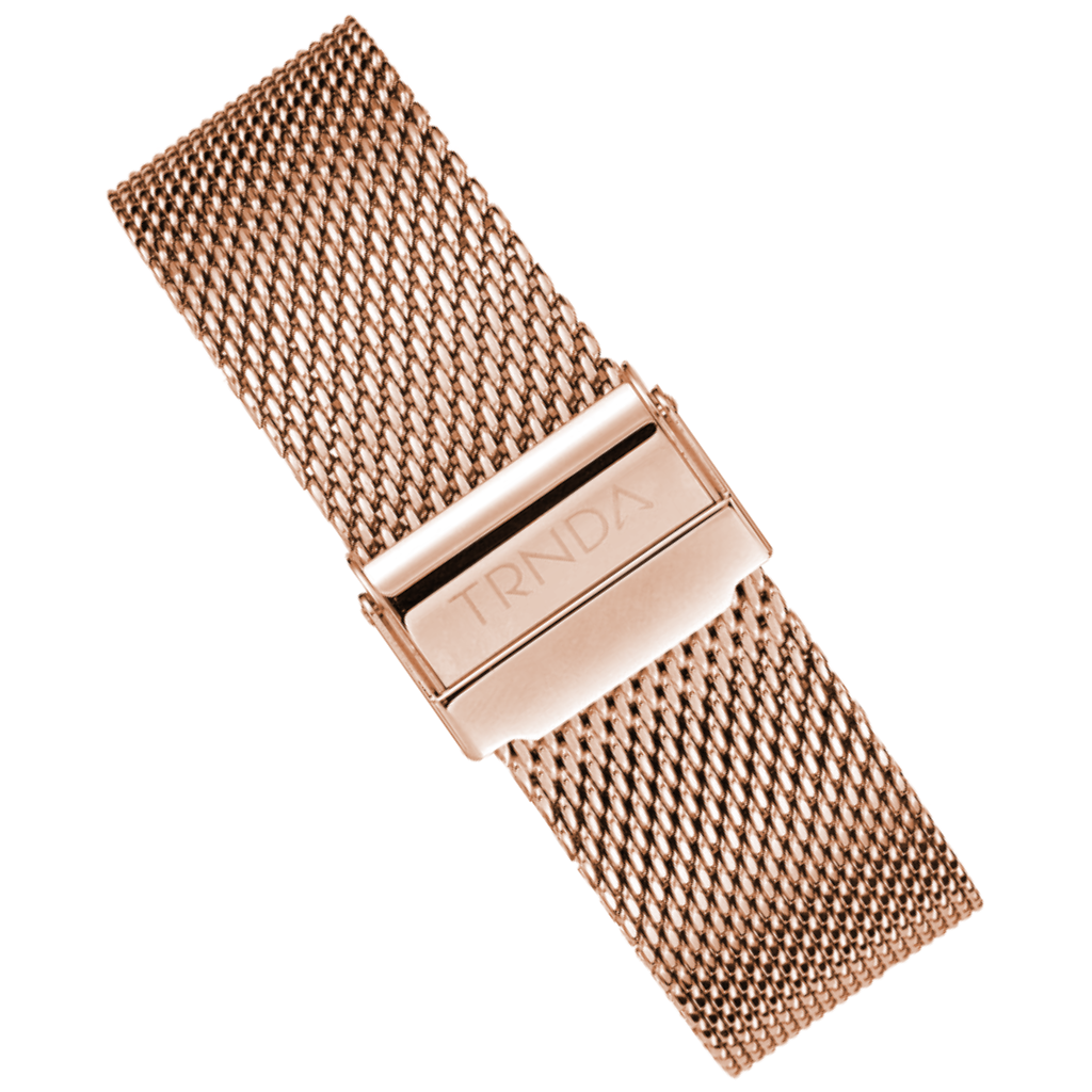 - Durable Rose Gold Mesh Stainless-Steel Band