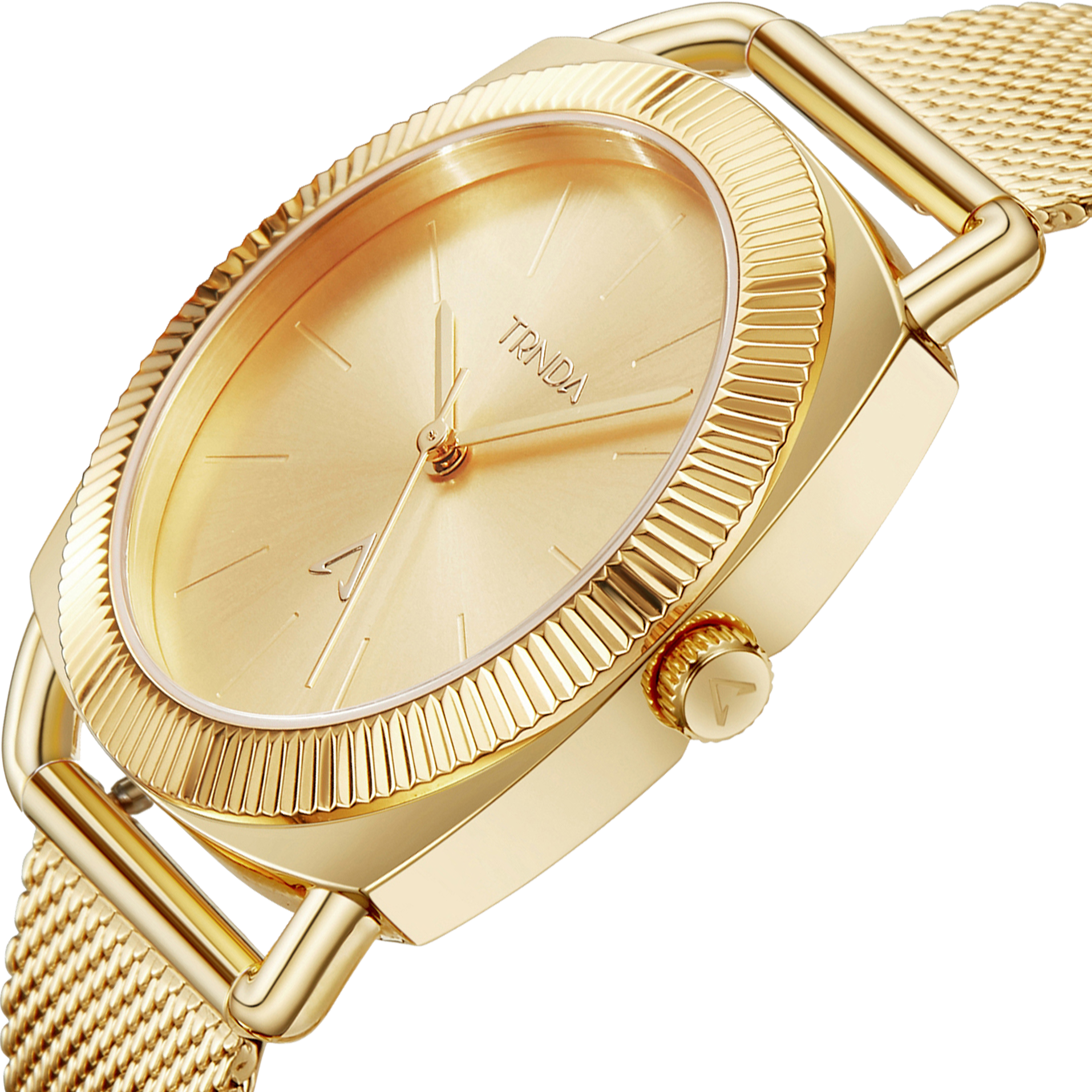 Make a statement with this beautiful, timeless watch. Show off your unique style with TRNDA. It's a watch you'll want to wear every day, and you deserve it!Featuring a Round Gold plated 35.8 mm case