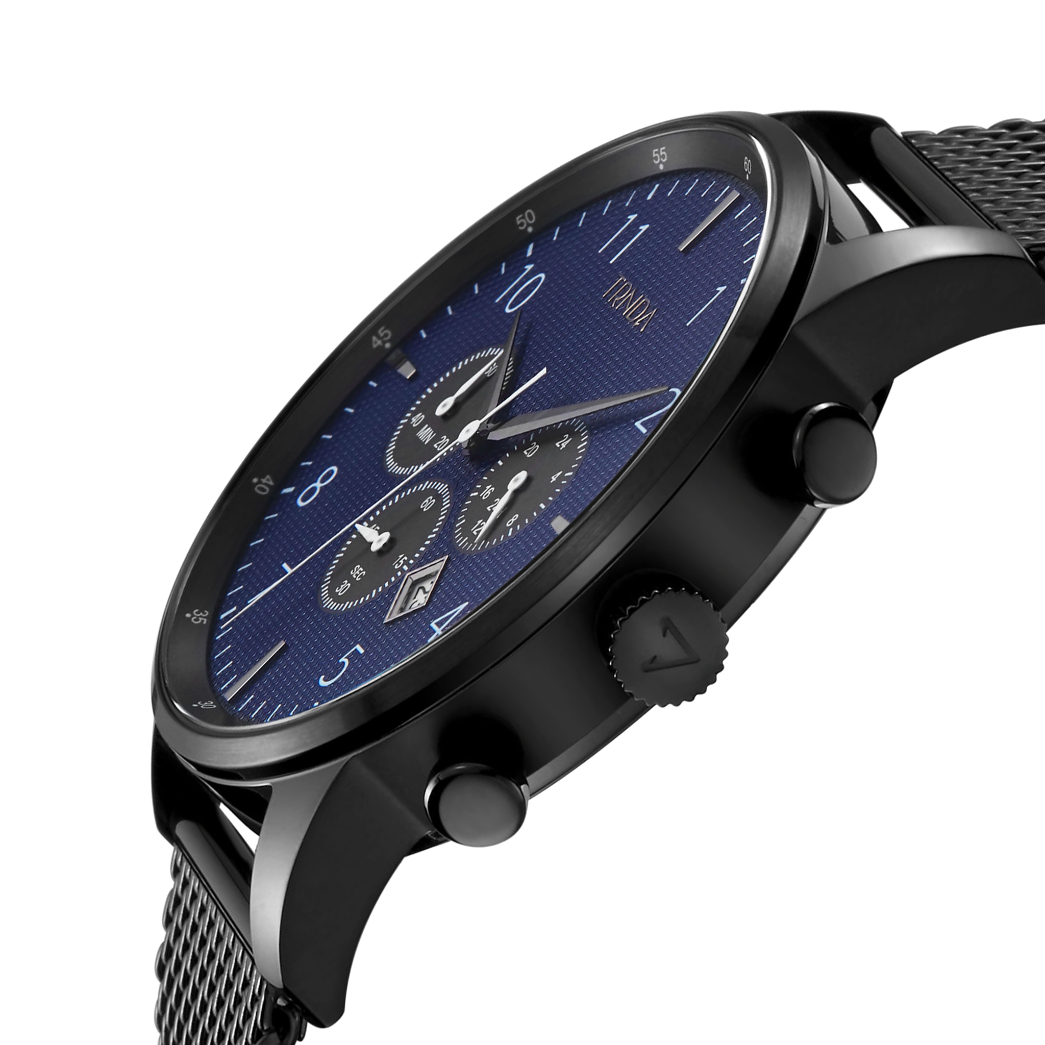Diese Uhr hat auch ein schwarzes Mesh-Edelstahlband