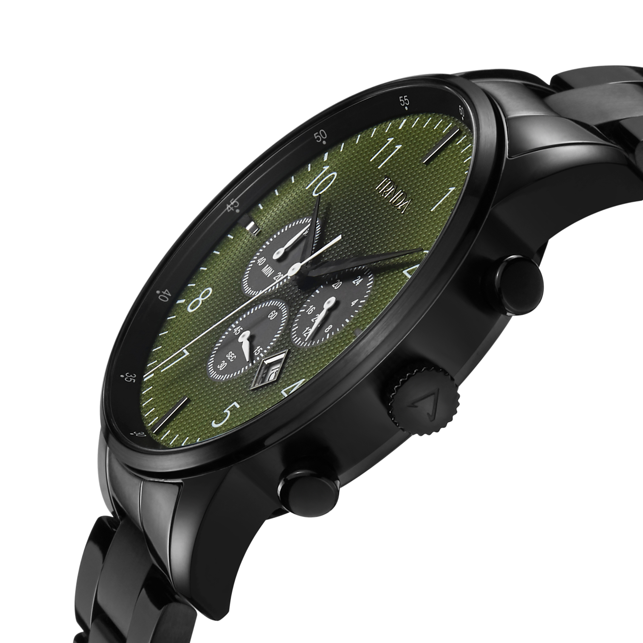 Diese Uhr hat auch ein schwarzes massives Edelstahlband