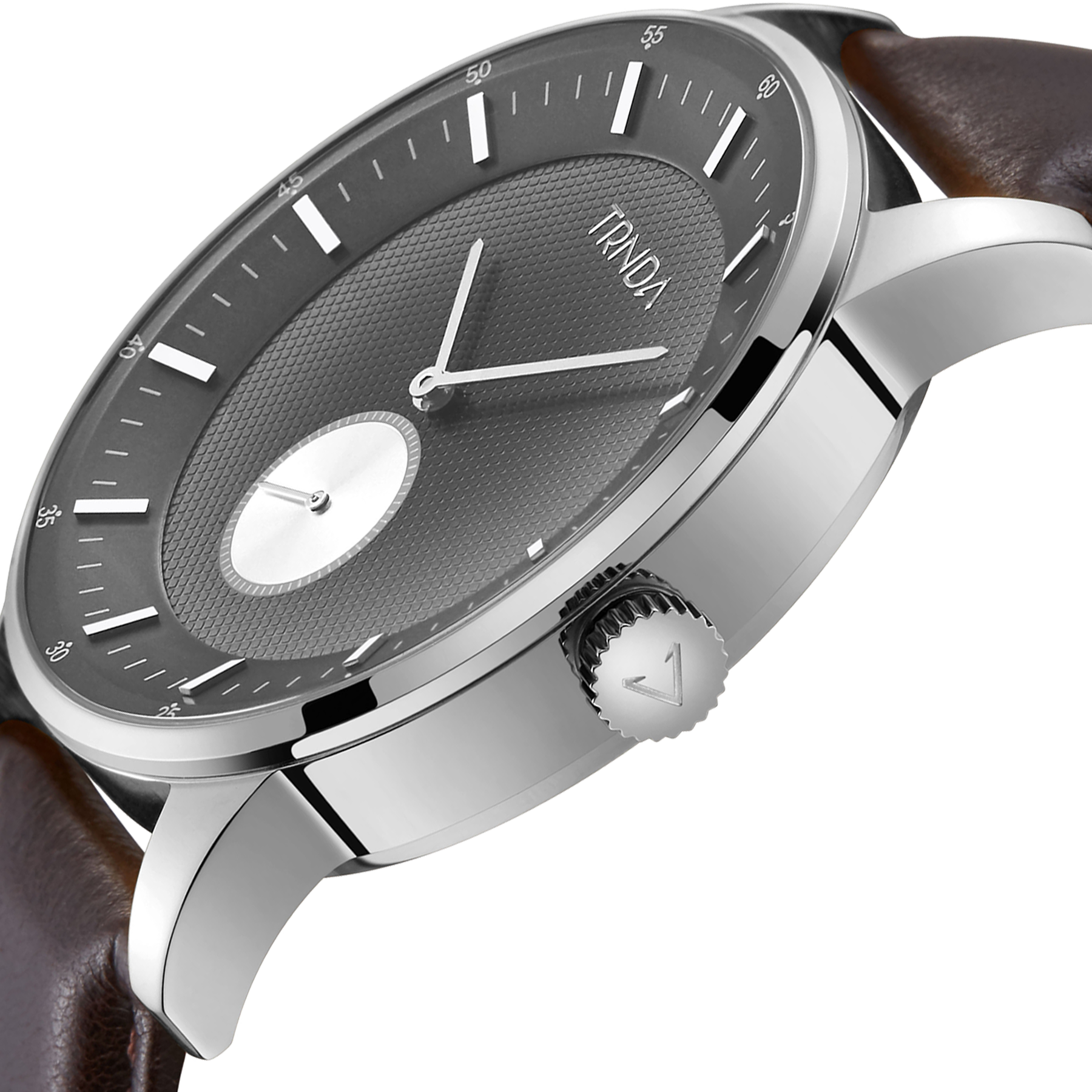 Diese Uhr hat auch ein braunes Echtlederband