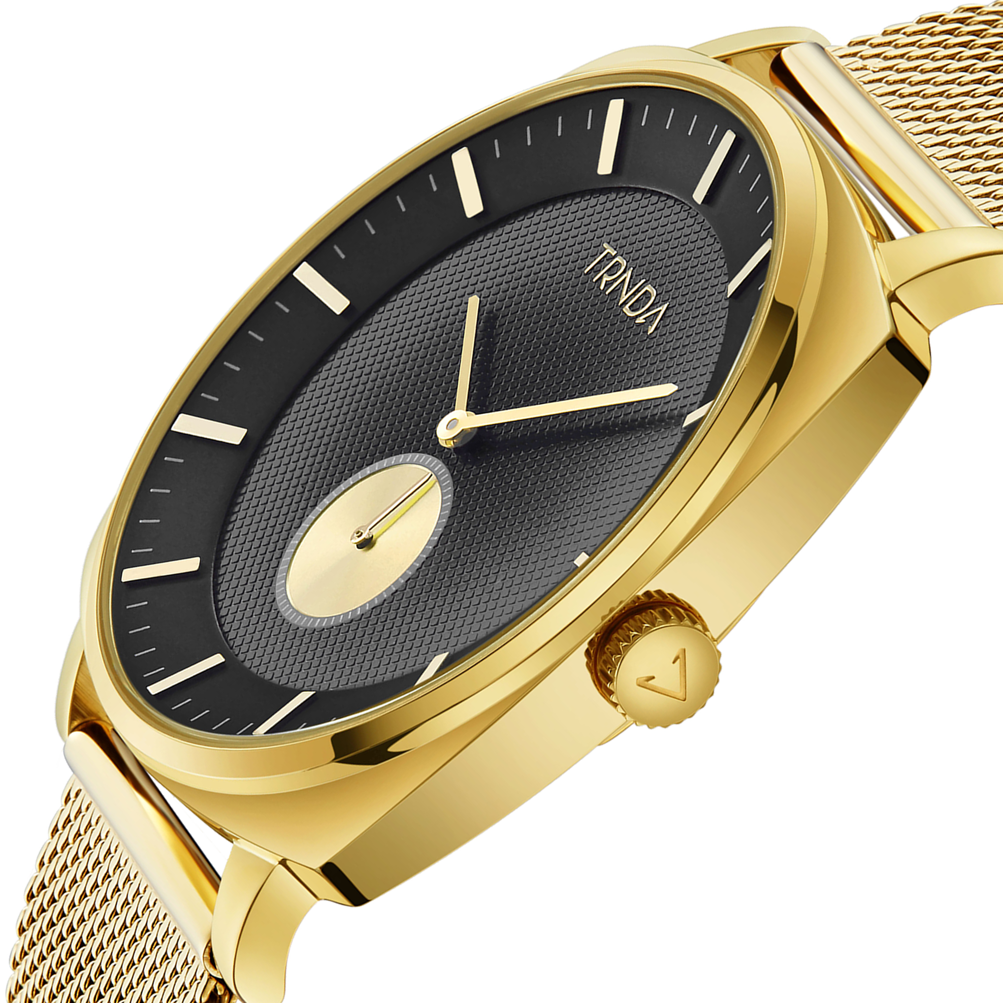 You'll love this watch with a Gold Mesh Stainless-Steel band that's stylish and durable. It's the perfect accessory for any occasion, whether you're dressing up or down. It's also built to last, so you can trust it to keep time and look great for years to come.