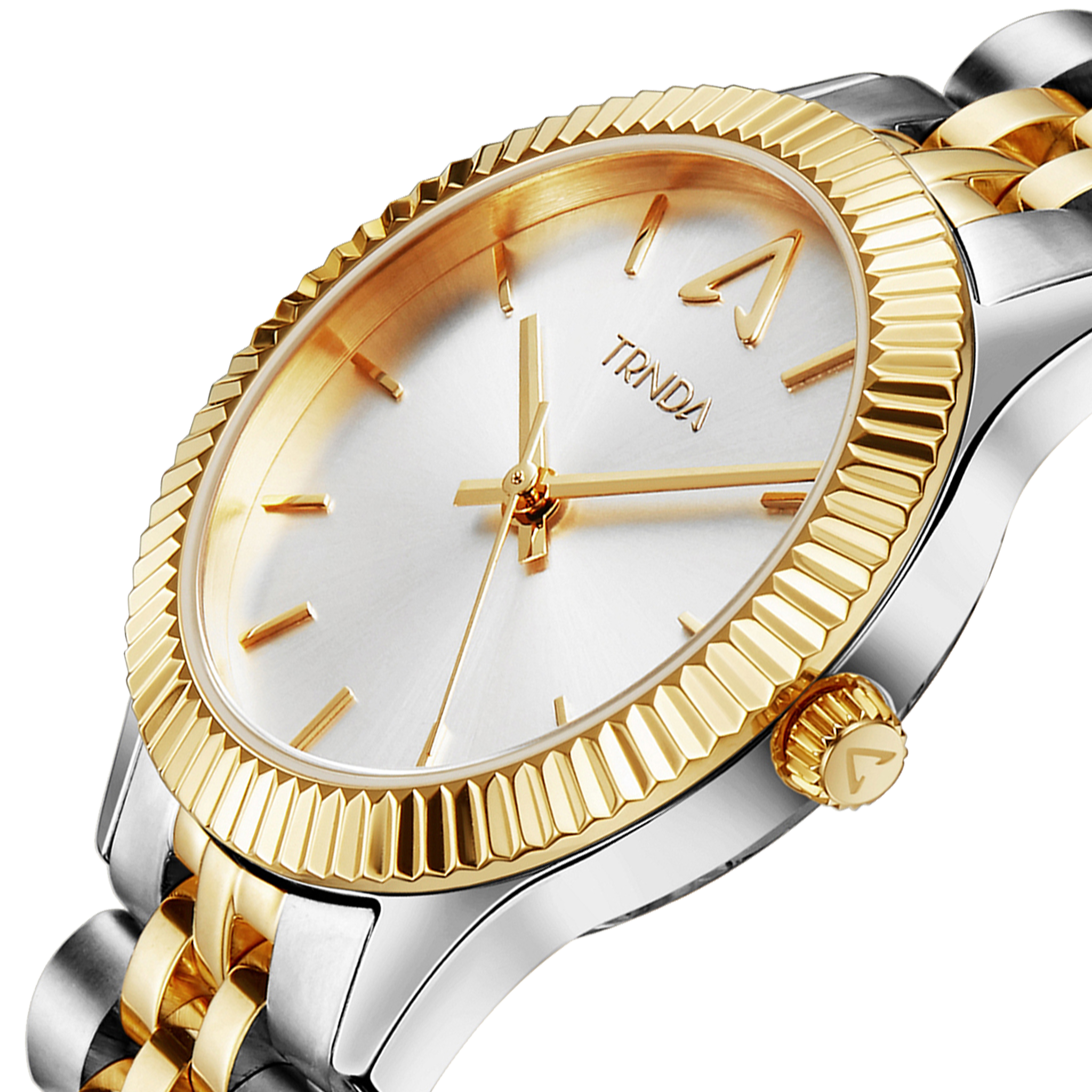 You'll love this watch with a Two Tone Silver & Gold Solid Stainless-Steel band that's stylish and durable. It's the perfect accessory for any occasion, whether you're dressing up or down. It's also built to last, so you can trust it to keep time and look great for years to come.