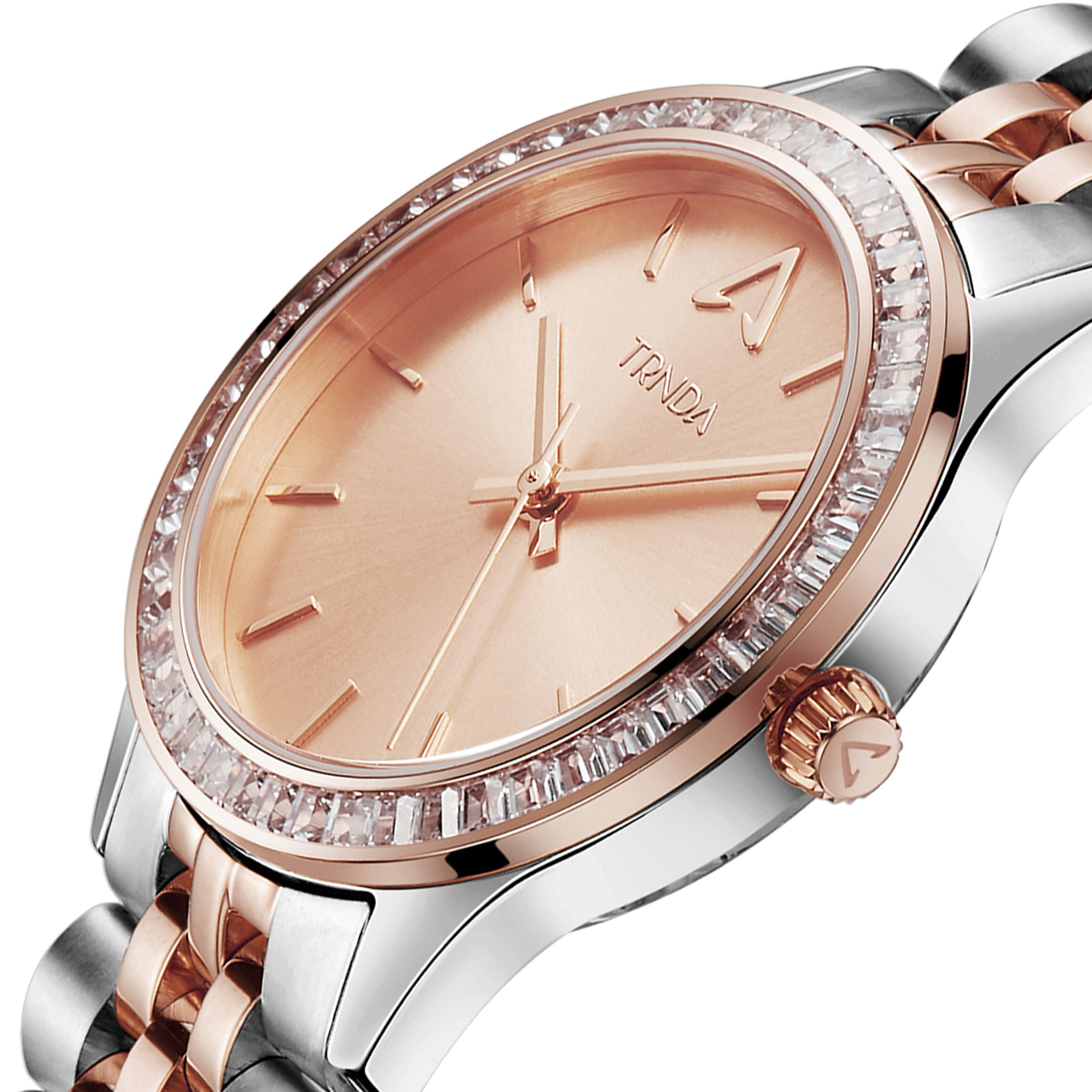 You'll love this watch with a Two Tone Silver & Rose Gold Solid Stainless-Steel band that's stylish and durable. It's the perfect accessory for any occasion, whether you're dressing up or down. It's also built to last, so you can trust it to keep time and look great for years to come.